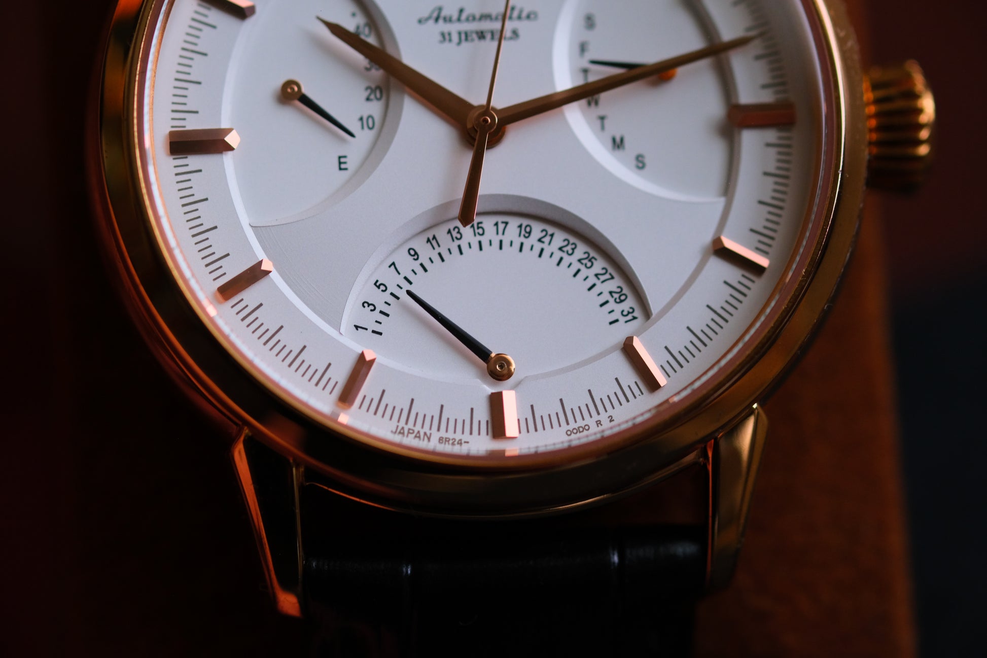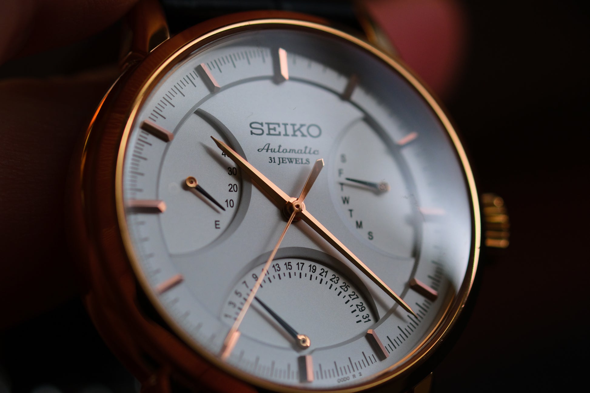 Seiko SARD006 Pressage 6R24-00D0 Rose Gold JDM Rare Retrograde day-date Power Reserve and a white dial | Great Condition